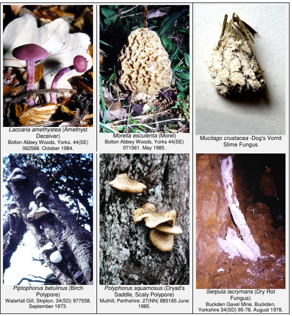 La sección VI expone fotos macro de multitud de hongos y setas; bastantes observaciones datan de los años 70 del pasado siglo (se nota en la calidad de las fotos escaneadas). Mis favoritas son las setitas minúsculas: la Hypholoma fasciculare, frecuente en los bosques de pinos, y la Lachnellula subtillissima, con su curioso sombrero invertido.